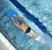 3. Mellúszó lábtempó ("békaláb") deszkával, váltottkarú nyújtózás:
